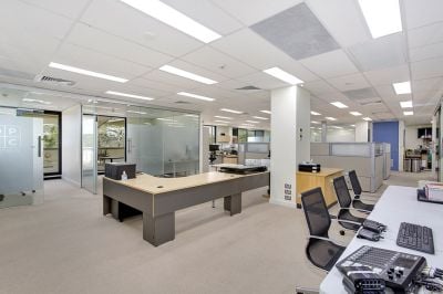 * Contemporary fit-out with glass partitioned offices