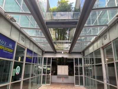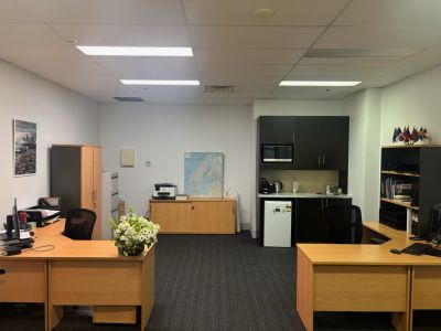 Full glass frontage, acoustic ceilings, air conditioned office space.