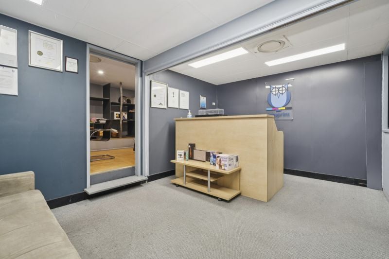 The workshops extends under the mezzanine area and includes commercial grade fittings, 2 toilets with kitchen facilities.